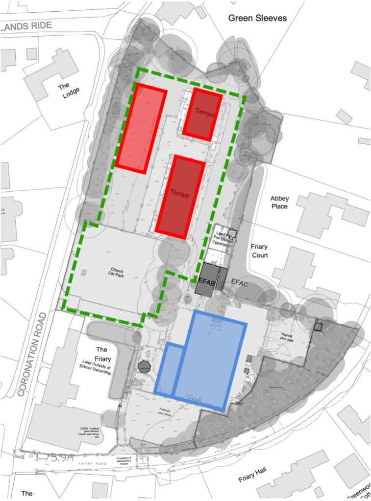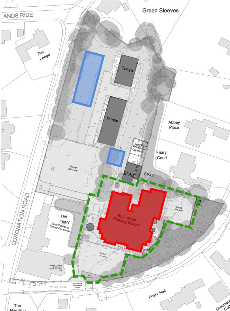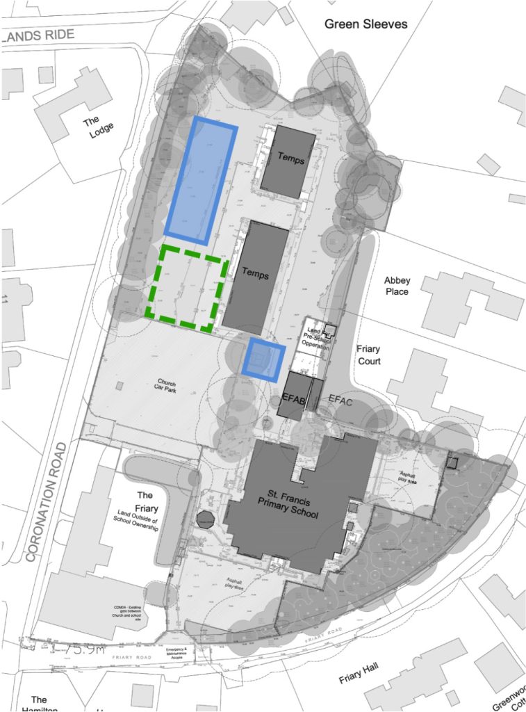- Construction of new temporary buildings and hard play area
