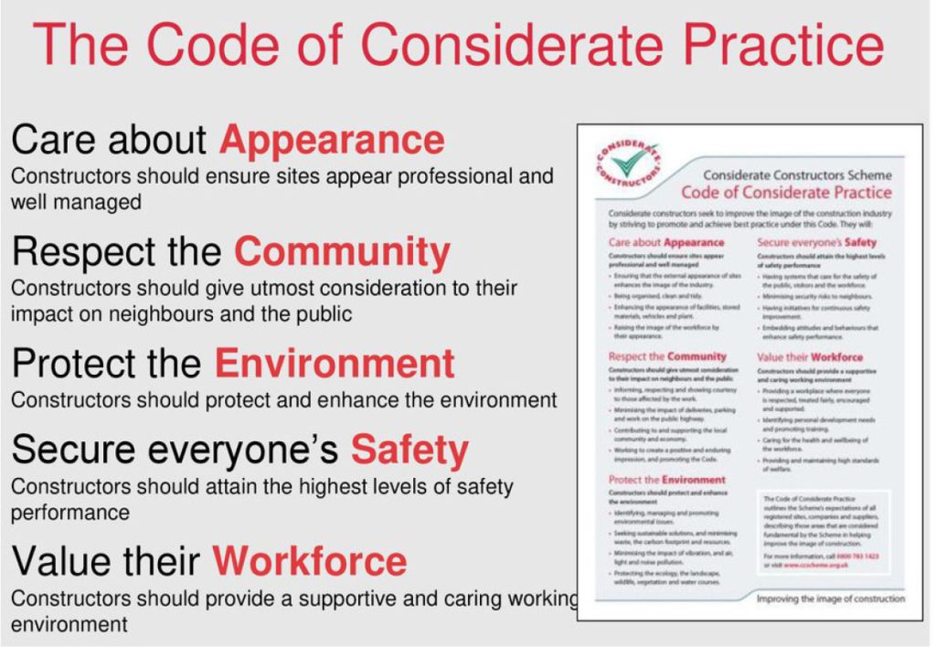 Contractors will ensure that due consideration is taken of the environmental site needs and the needs of neighbouring landowners and occupiers. Typically, this would require controls on site traffic, site hours of operation, site noise and waste management.